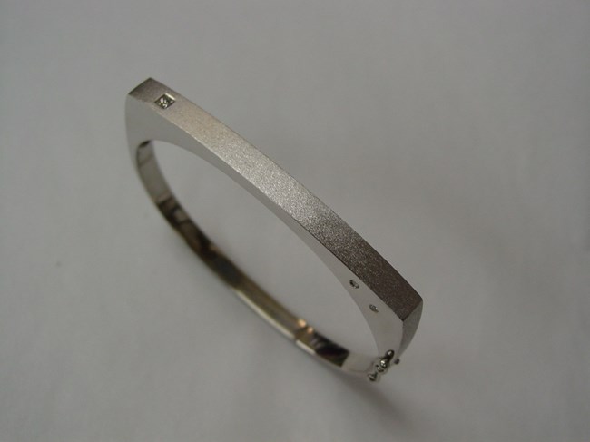 Thin White Gold Bangle with Pave Set Princess Cut Diamond